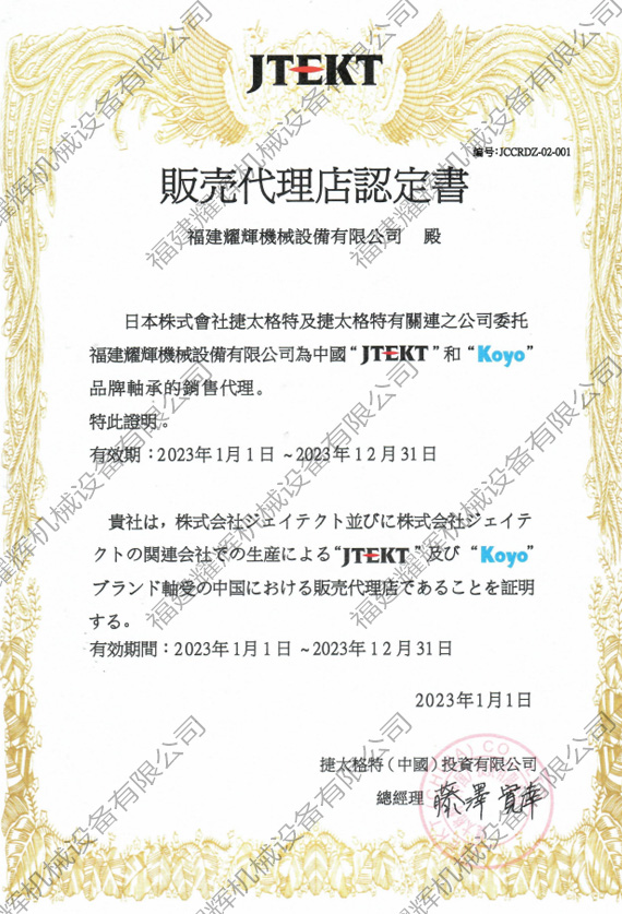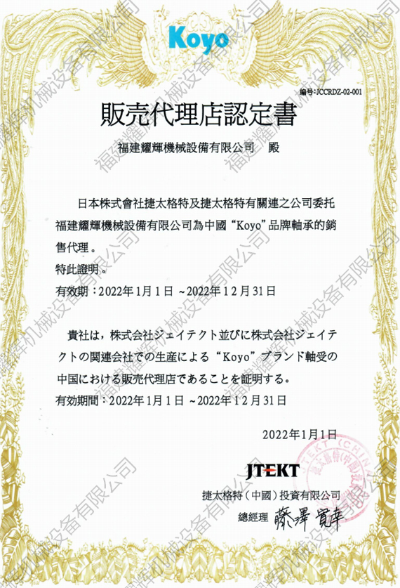 koyo授權(quán)證書