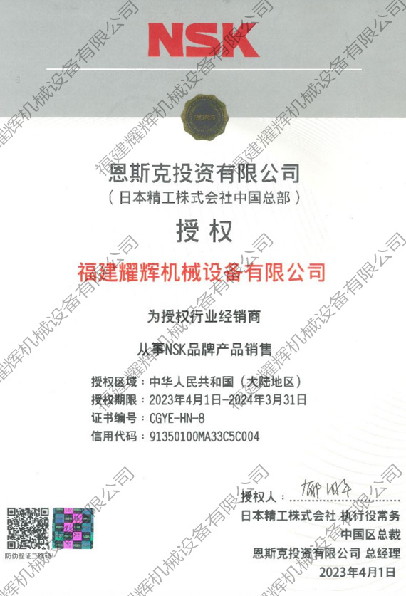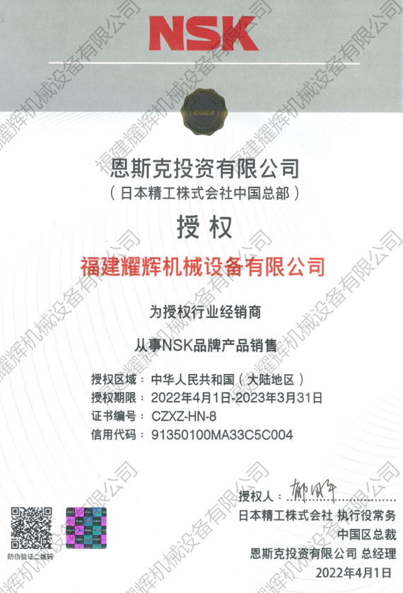 NSK授權(quán)證書